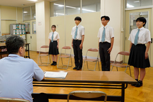 7月8日(月)、3年生を対象に進学模擬面接を実施しました。 代表生徒11名が個人面接と集団面接の4つのグループにわかれ、面接官役の教員からの質問に懸命に答えました。 志望理由や話した内容をもとに深堀りした質問もあり、緊張感のある本番さながらの面接となりました。 暑さ対策としてオンラインでの実施となりましたが、参加した生徒は代表生徒の面接の様子を熱心に見入っており、面接の具体的なイメージを抱くことが出来たようです。