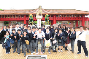 4月1日から3日まで、2年生23名が沖縄本島への修学旅行に行きました。 那覇空港への道のりは、乱気流の影響で飛行機が大きく揺れてびっくりしました。 1日目はおきなわワールドとアメリカンビレッジでの散策、2日目はダイビング体験と琉球グラスの絵付け体験をおこない、その後に美ら海水族館に行きました。 最終日は、国際通りを散策してたくさんお土産を購入していました。 最後まで全員が体調を崩すことなく有意義な時間を過ごすことができました。